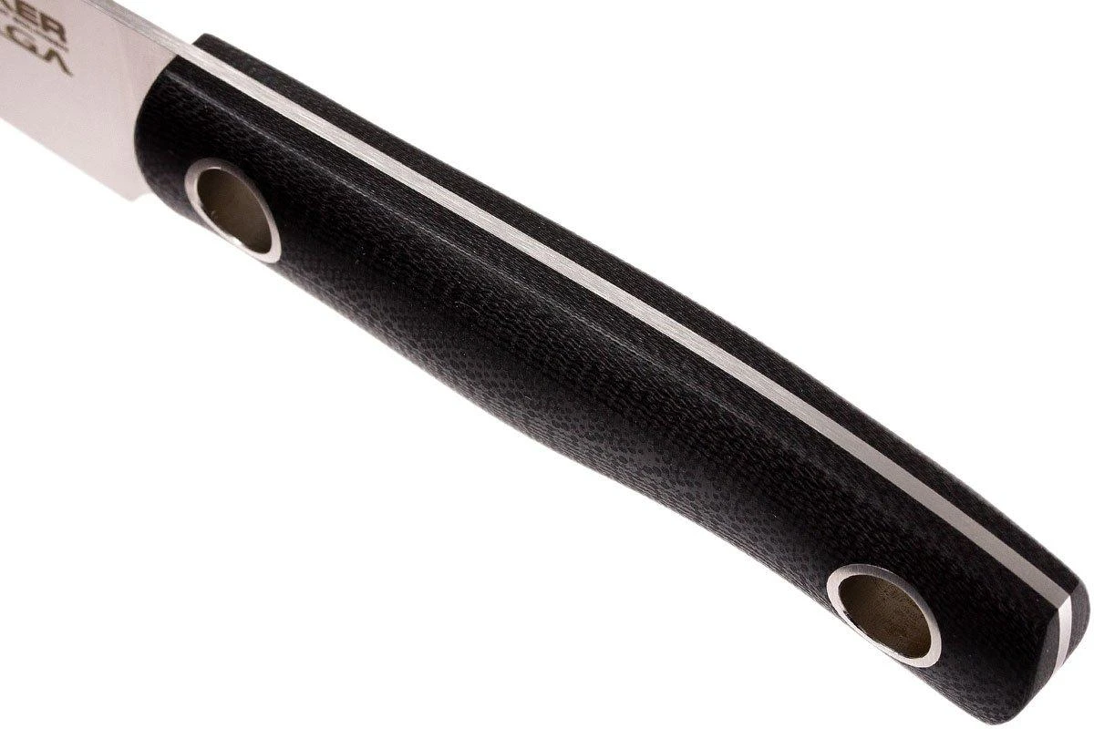 Ce couteau d’office Böker Saga est idéal pour les petites tâches de coupe et d’épluchage. C’est un couteau absolument indispensable dans votre cuisine. Les deux rivets creux dans le manche de ce couteau d’office lui donnent un charme fou.