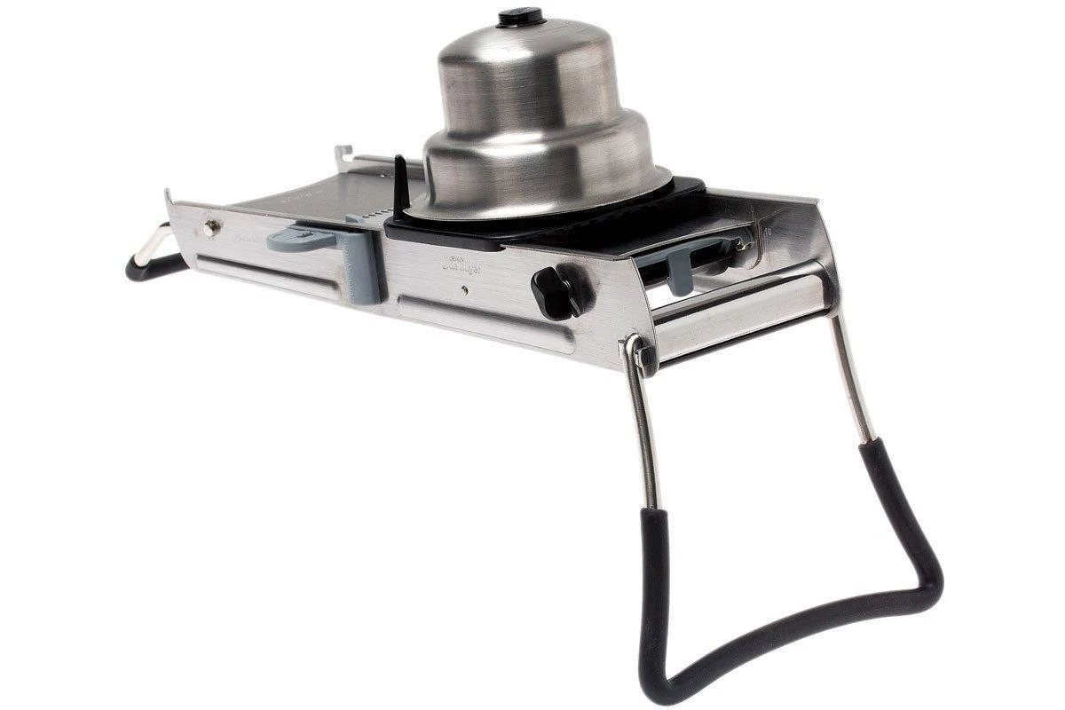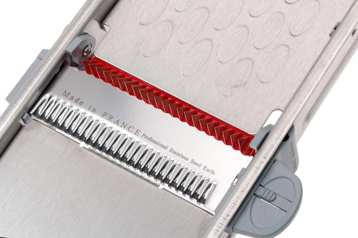 La mandoline DeBuyer Revolution est robuste et polyvalente. Le cadre en acier inoxydable est très stable et est facile à nettoyer. Tranches, gaufrettes, cubes, bandes ou losanges : cette mandoline peut tout faire. Sa limite ? Votre imagination.