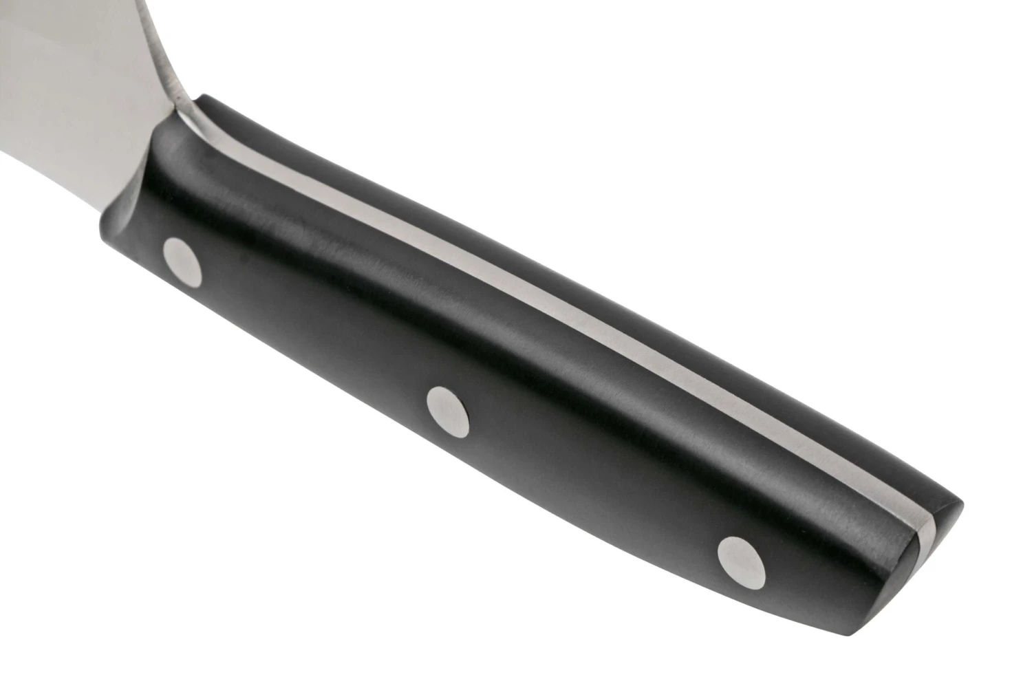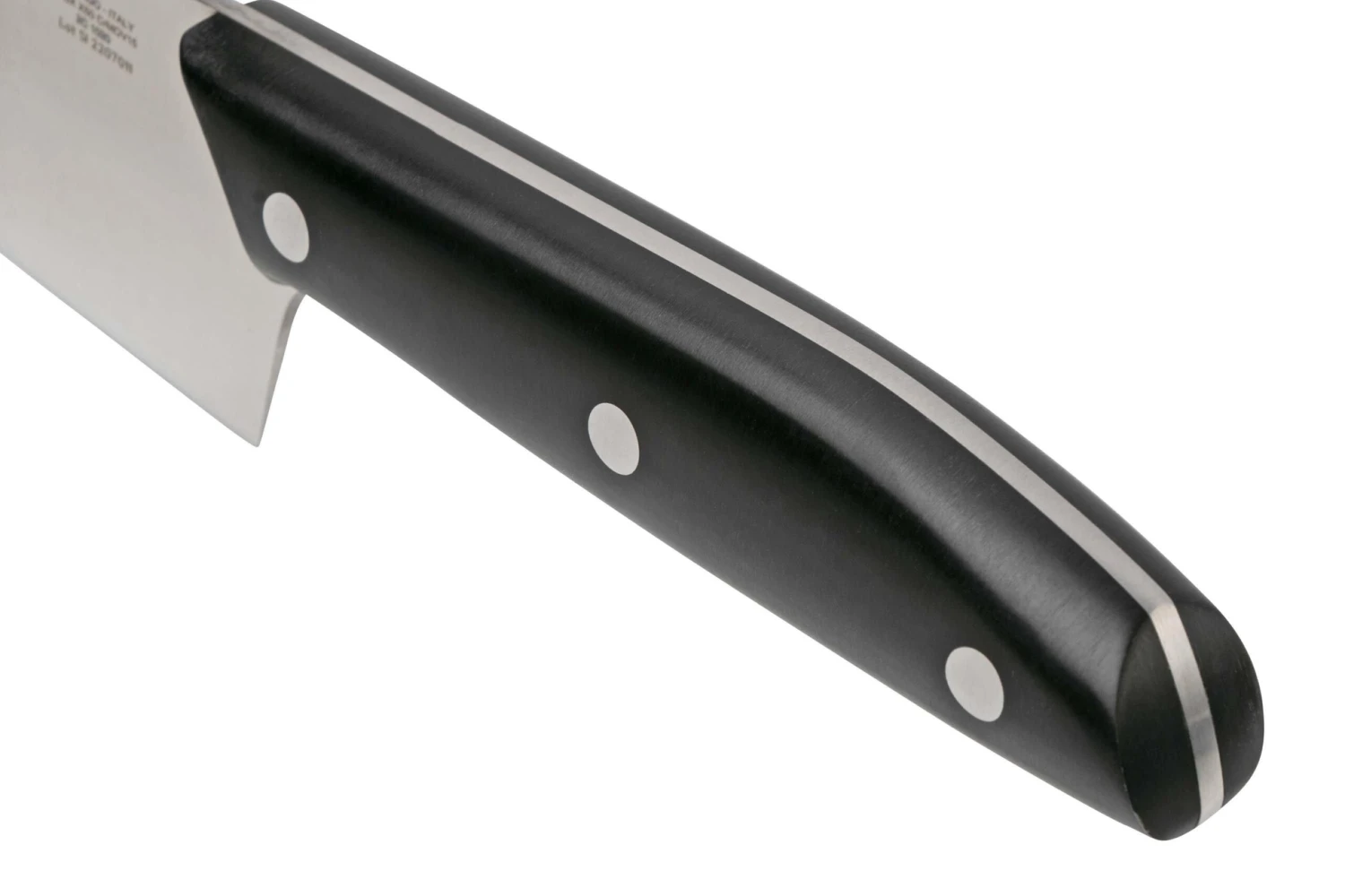 Le kengata Due Cigni Cookout 1896 est un couteau de cuisine très chic. Kengata signifie »en forme d’épée », en référence à la forme de la lame qui s’incline brusquement à son extrémité. Ce couteau peut aussi être considéré comme un membre de la famille des santoku. C’est la version japonaise du couteau de chef. Grâce à sa pointe étroite, vous pouvez couper la viande, le poisson et les légumes très finement.