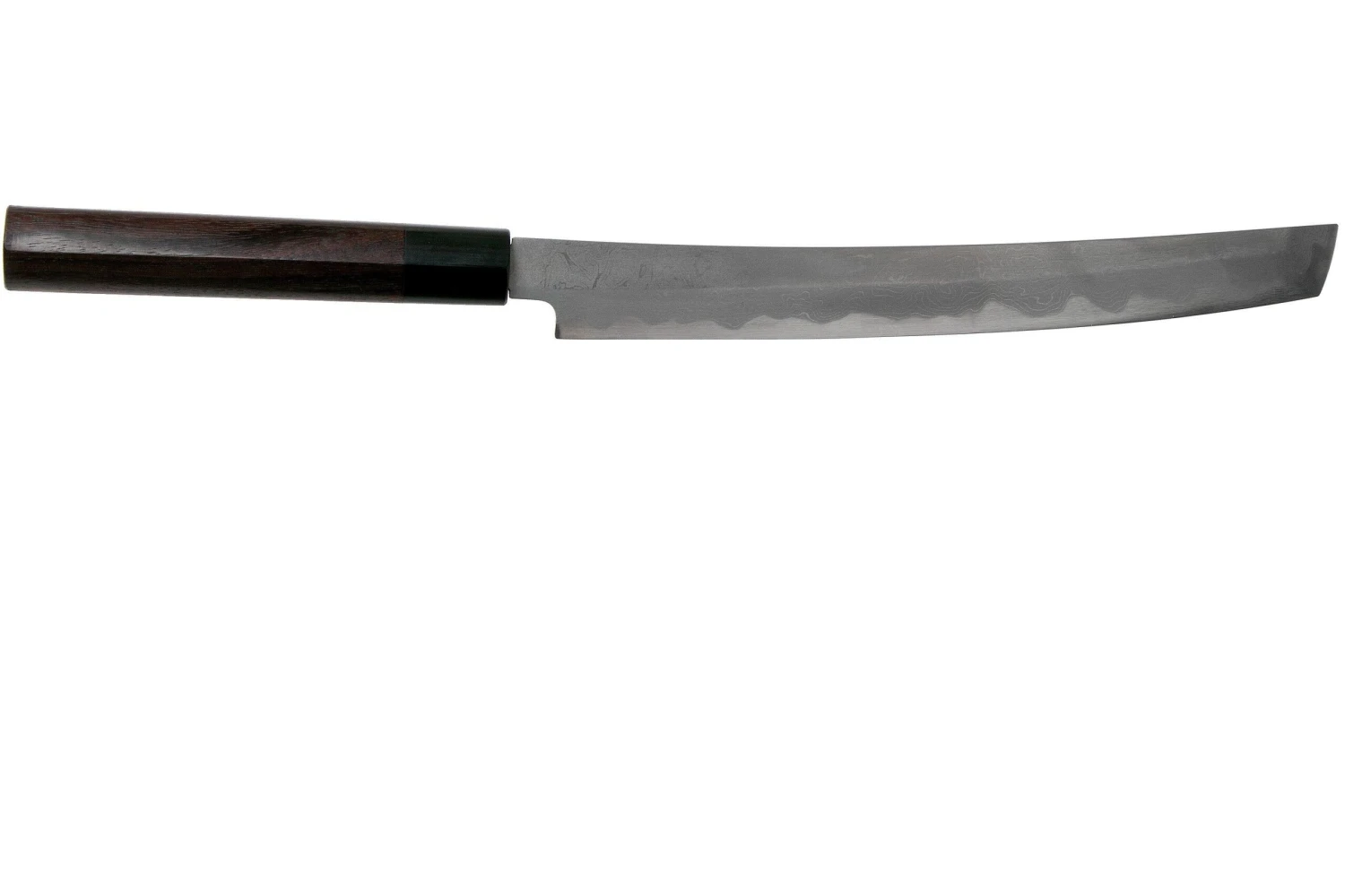 L’Eden Takobiki Ryoba 24 cm est une impressionnante épée de samouraï pour votre cuisine. Avec une longeur de lame de 24 cm, tranchez les plus fins sashimis d’un mouvement souple !