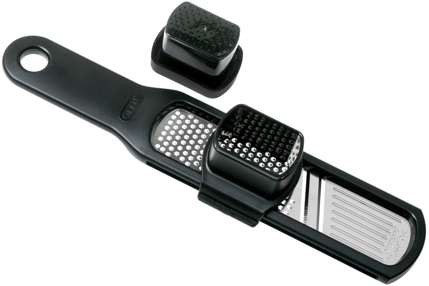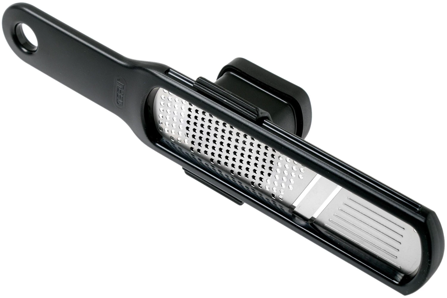 Ce coupe-ail et râpe GEFU RAFINO, 50472 est idéal pour trancher ou râper l’ail et le gingembre. Le GEFU RAFINO est livré avec un ‘poussoir’. On y place l’ail ou le gingembre pour ensuite les glisser sur la trancheuse tout en gardant les doigts bien en sécurité. De quoi râper en toute facilité.