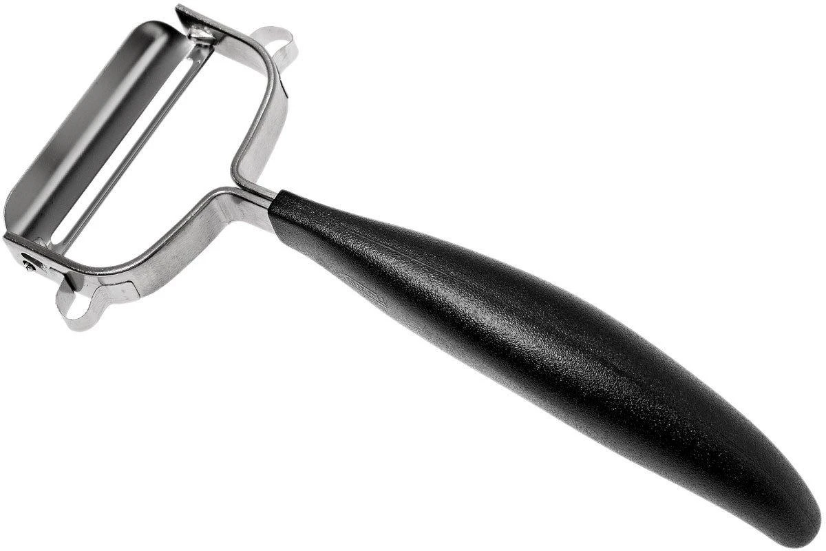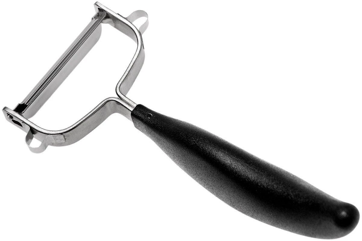 Grâce à cet éplucheur Universel GEFU, il est facile de peler même les fruits et légumes longs comme les concombres, courgettes et autres carottes en toute sécurité. Il est également utile pour les pommes de terre. L’ouverture très étroite permet de prélever la peau finement. La lame du dessous est bien fine. Elle permet d’éviter que la chair reste collée à la lame. L’outil de coupe intégré vous permet de retirer facilement les yeux des pommes de terre par exemple. On peut aussi s’en servir pour couper finement et aisément des écorces d’agrumes. La lame est en acier inoxydable. Le manche en plastique tient parfaitement en main. Très hygiénique donc.