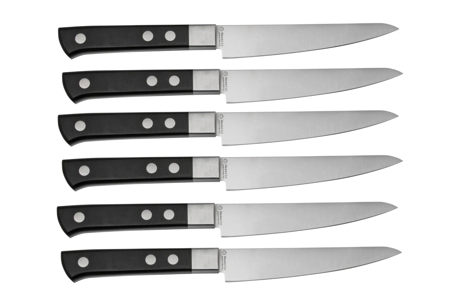 Le set de 6 couteaux à steak Maserin TEGI 2500TG01-N noir est un set de couteaux élégants et légers. Ils permettent de couper facilement un steak ou un autre morceau de viande sans le déchirer. Grâce à leurs lames lisses, ces couteaux conviennent également comme couteaux de cuisine universels. Ce set est livré avec un sac de rangement enroulable ainsi que 6 protège-couteaux.