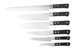 Le set de 6 couteaux de cuisine Maserin TEGI 2500TG02-N noir est un set de couteaux de cuisine élégants et légers. D’un long sujihiki à un petit couteau à bec d’oiseau, ce set contient tout ce dont vous avez besoin pour cuisiner. Ce set est livré avec un sac de rangement enroulable ainsi que 6 protège-couteaux.