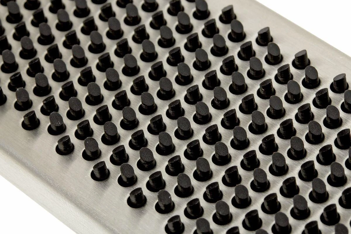 Avec cette râpe faite en RVS et en plastic vous transformez entre autre le gingembre, le citron, l’ail, le wasabi en purée qui peut être utilisée comme substance d’aromatisant dans de nombreux plats et sauces. La part RVAS peut aisément être retirée pour que rien ne se perde de l’aromatisant. Le râpage peut passer dans le lave-vaisselle.