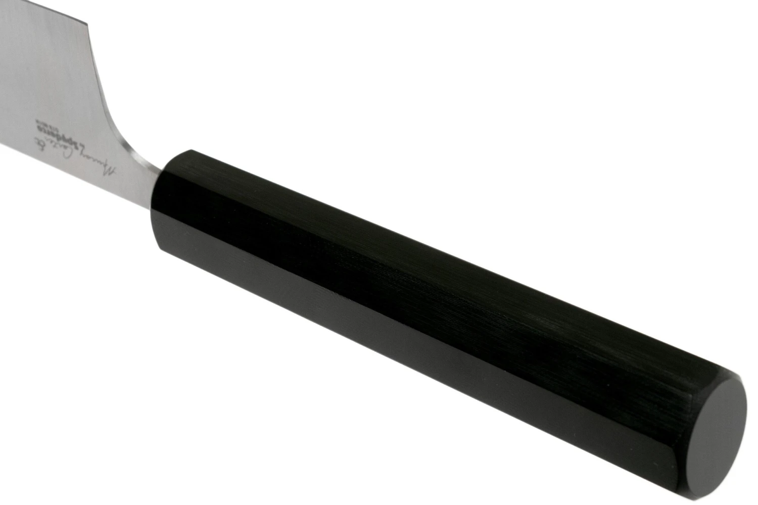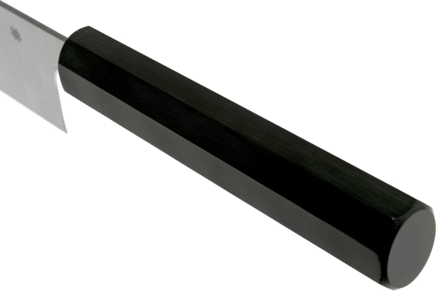 Le couteau Spyderco Wakiita Gyuto de la collection Murray Carter est le couteau le plus polyvalent de cette gamme. Littéralement traduit, Gyuto signifie ‘couteau à bœuf’. Le Gyuto est l’équivalent japonais du couteau de chef occidental. Un design polyvalent qui convient parfaitement pour couper la viande, le poisson, les légumes et les herbes.