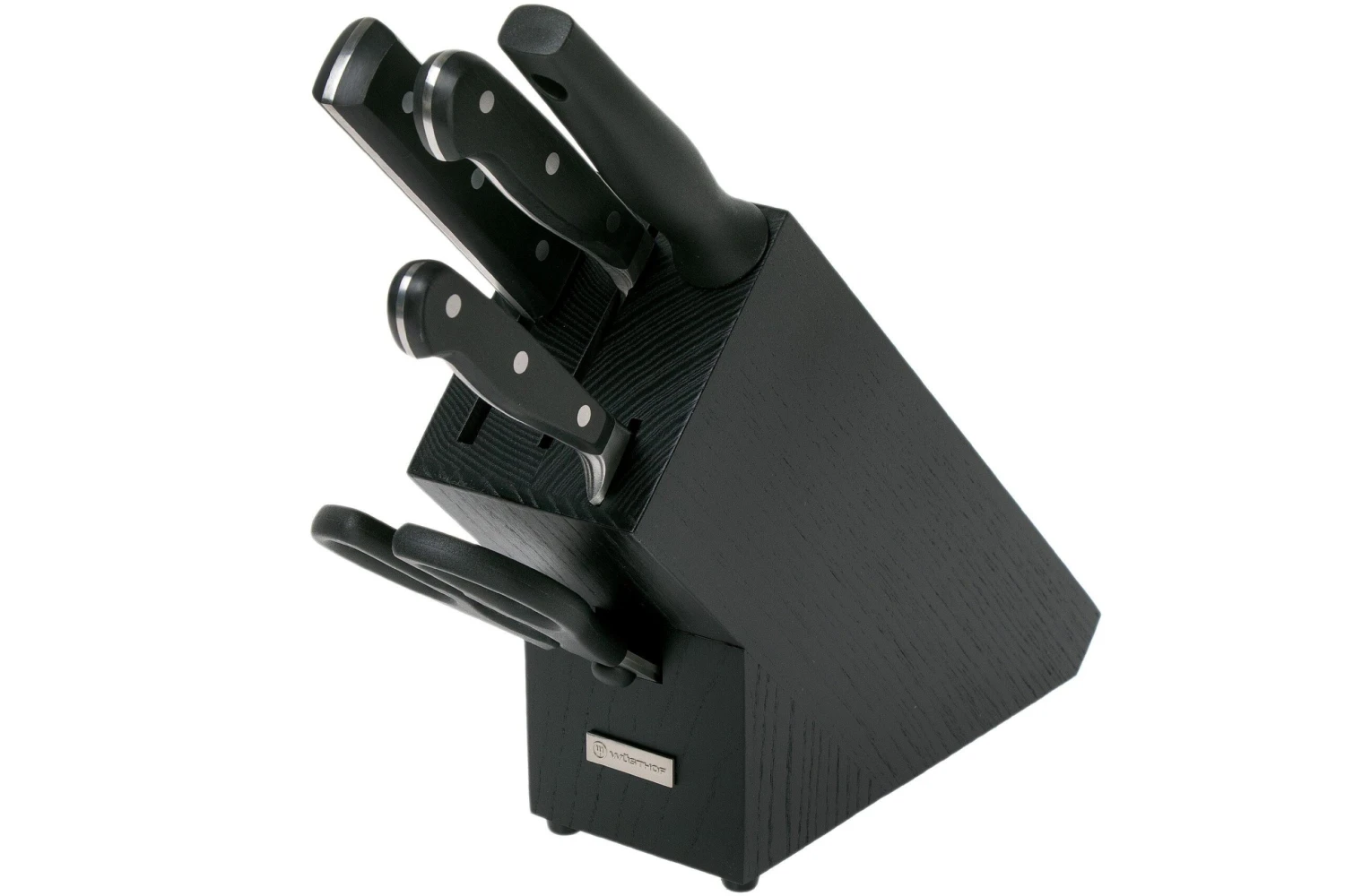 Ce set de couteaux Wüsthof Classic 5 pièces est unique grâce à ses couteaux spéciaux. Le set se compose de trois couteaux, d’un fusil d’affûtage et de ciseaux. Les deux grands couteaux se ressemblent, mais chacun a une fonction différente !