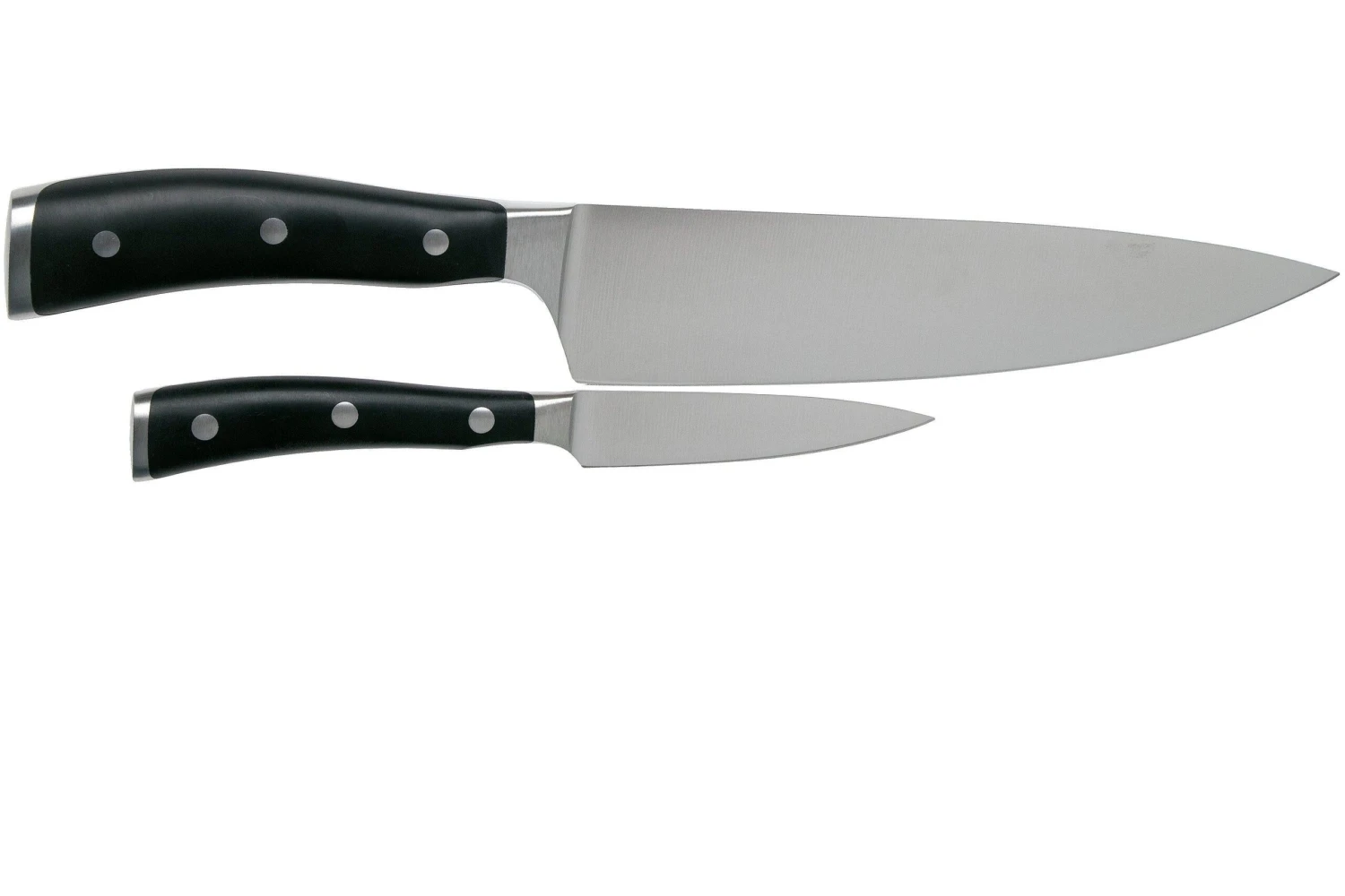 Cet ensemble de couteaux Wüsthof Classic Ikon de 2 pièces comprend un couteau de chef de 20 cm pour les tâches d’envergure et un couteau d’office de 9 cm pour les petits travaux en cuisine.