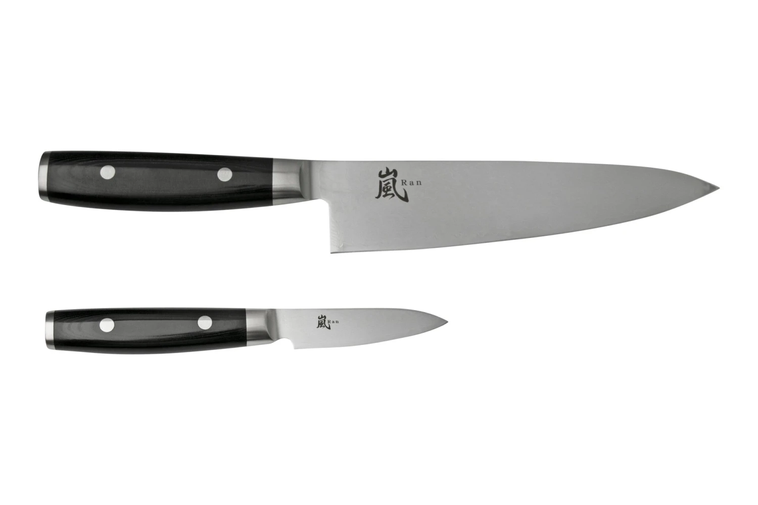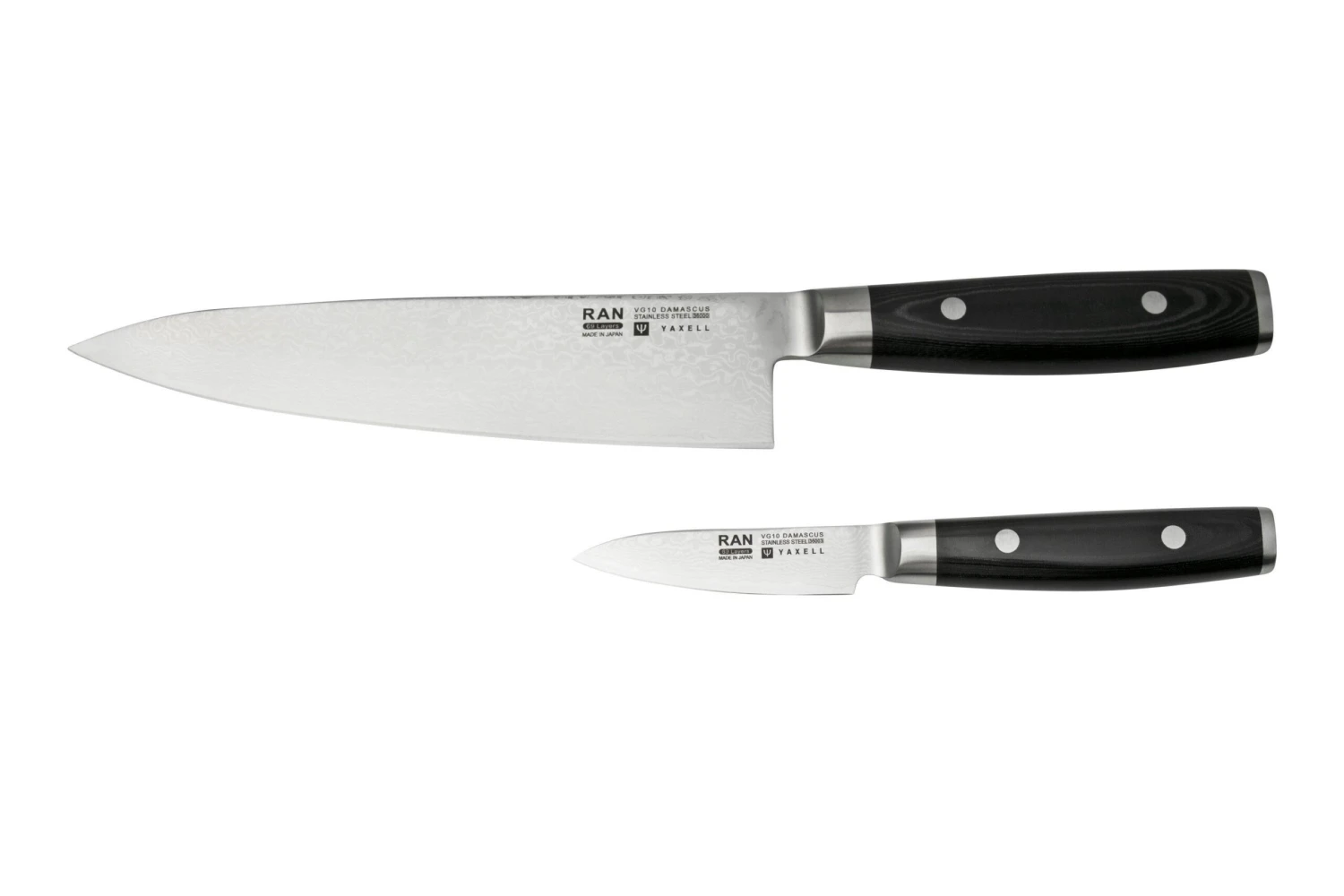 Le set cadeau 2 pièces Yaxell Ran 36423 est un set composé de deux couteaux de cuisine traditionnels japonais, dans une version moderne. Un magnifique cadeau pour les chefs qui prennent les choses au serieux. Le couteau de chef est un couteau ultra polyvalent en cuisine. Assez grand pour trancher des morceaux de viande, poisson ou légumes, et assez petit pour couper finement de l’ail ou des herbes aromatiques. Le couteau à éplucher sert à toutes les petites tâches de coupe. Entre sa lame courte et son poids plume, c’est un couteau très maniable. Idéal pour éplucher les fruits et légumes !